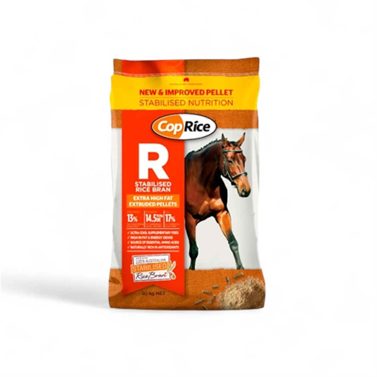 Welcome to our exclusive range of Australian-made equine products, including CopRice Stabilised Rice Bran Pellets 20kg. These high-quality pellets are designed to provide essential nutrition for your horses, ensuring they stay healthy and strong. Here are four key benefits of this product: