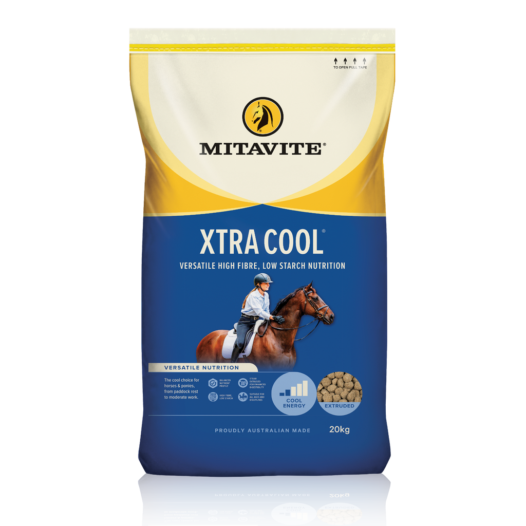 Welcome to our range of premium Australian-made horse feed products. One of our top sellers is the Mitavite Xtra-Cool 20kg, specially formulated to keep your horses healthy and energized.